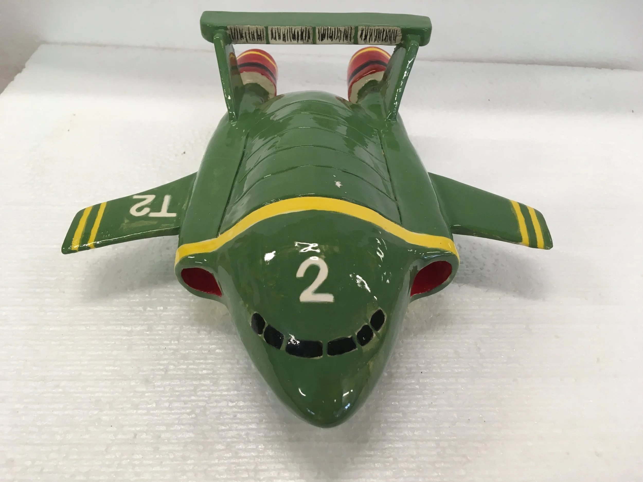 The Thunderbird Two sculpture series reflects on the psychological strain placed on emergency services workers and the gap between public perception and lived experience. Using the iconic form of Thunderbird Two from the popular 1960s British children’s television show, the work draws on a symbol of heroism, virtue, and the belief that good always triumphs over evil. This idealised view mirrors the way society often sees emergency workers—strong, selfless, and unaffected by trauma. Children saying they want to be firefighters when they grow up speaks to this idolisation, which often overlooks the harsh realities of the role. In truth, emergency workers are ordinary people exposed to extraordinary stress. The cumulative nature of traumatic experiences can lead to serious mental health issues, including PTSD. These sculptures serve as an analogy for the emotional burden carried over time, challenging viewers to look beyond appearances and recognise the human vulnerability behind the heroic façade.